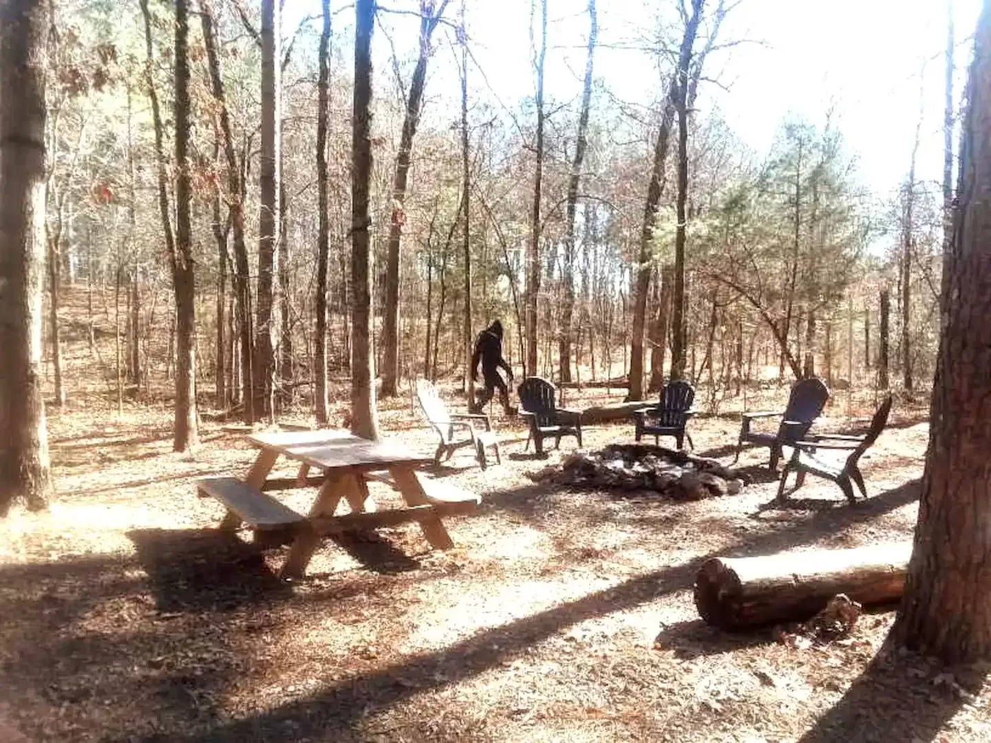 “Be sure & look for BigFoot behind the cabin. He has arrived!”