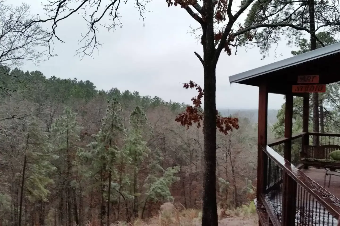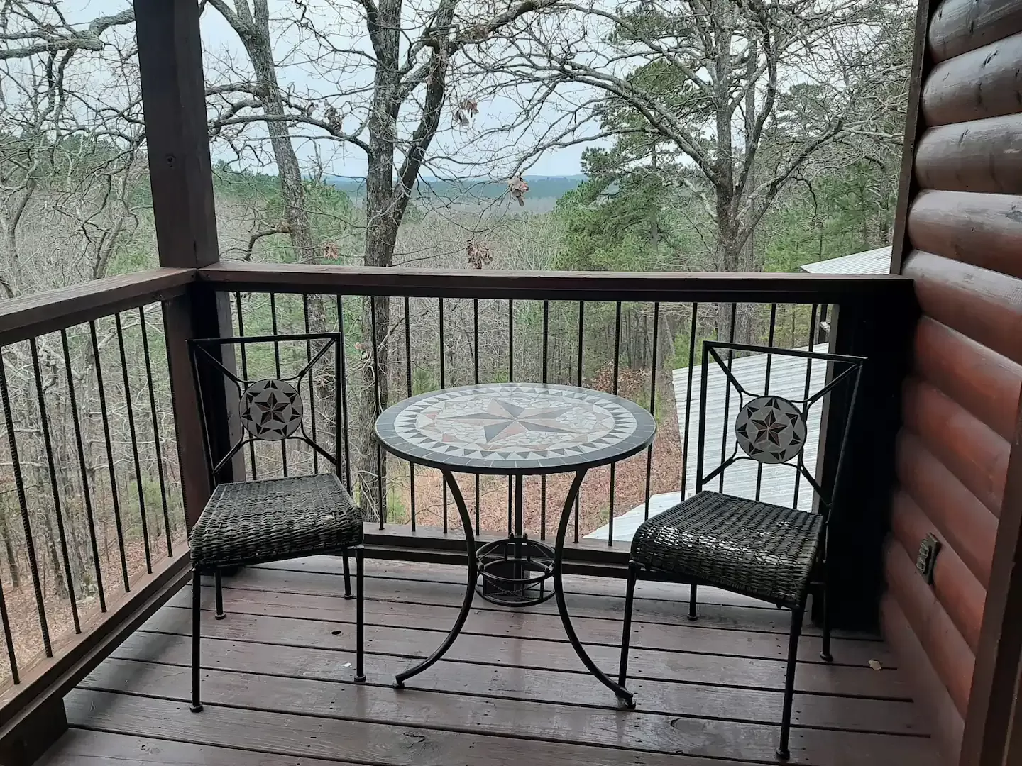 Evening Star is all of the second floor at Five Star Mountain Lodge with outside stairs leading up to it. This mountainous suite is completely private with an astounding 50 mile view which borders the National Forest in the Kiamichi Mountains. Located in prestigious Southern Hills, it is only minutes from Beavers Bend State Park, Broken Bow Lake, and Mountain Fork River. The lodge is on 7 1/3 acres with a 1/4 mile winding drive from the road.