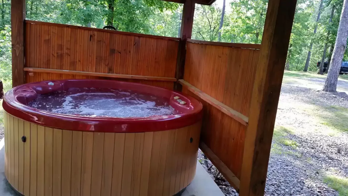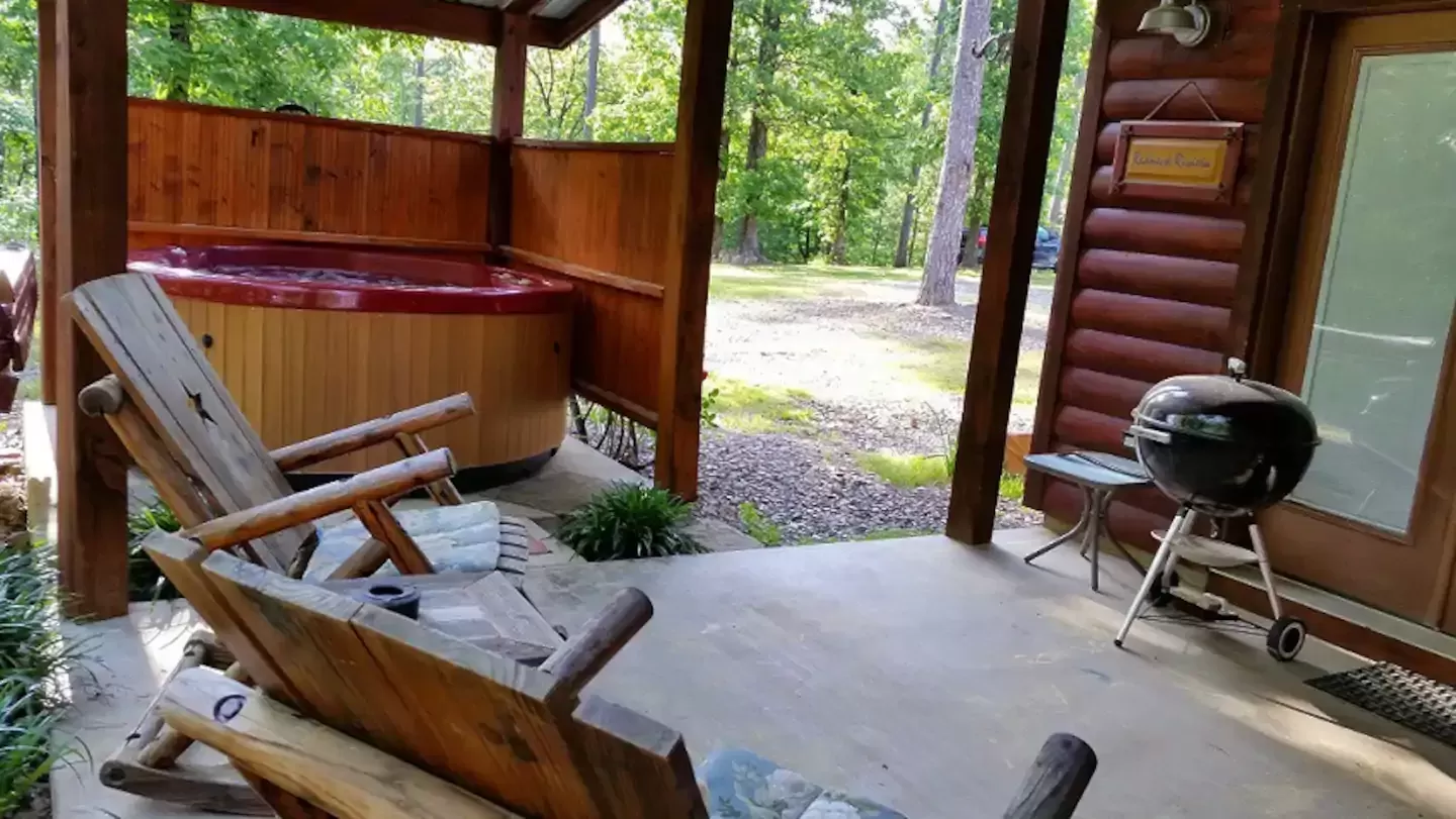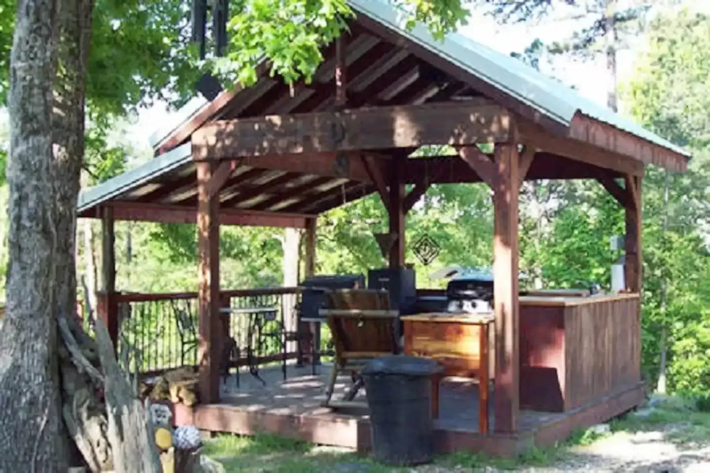 Outdoors includes its own 230 sq. ft. concrete private covered patio with hot tub, patio furniture, & a charcoal grill. Also included is an outdoor kitchen with cold water running sink, gas grill, & charcoal grill. There is also a campfire area w/ outdoor chairs. Propane is furnished for the gas grill. Please bring your own charcoal & lighter fluid.